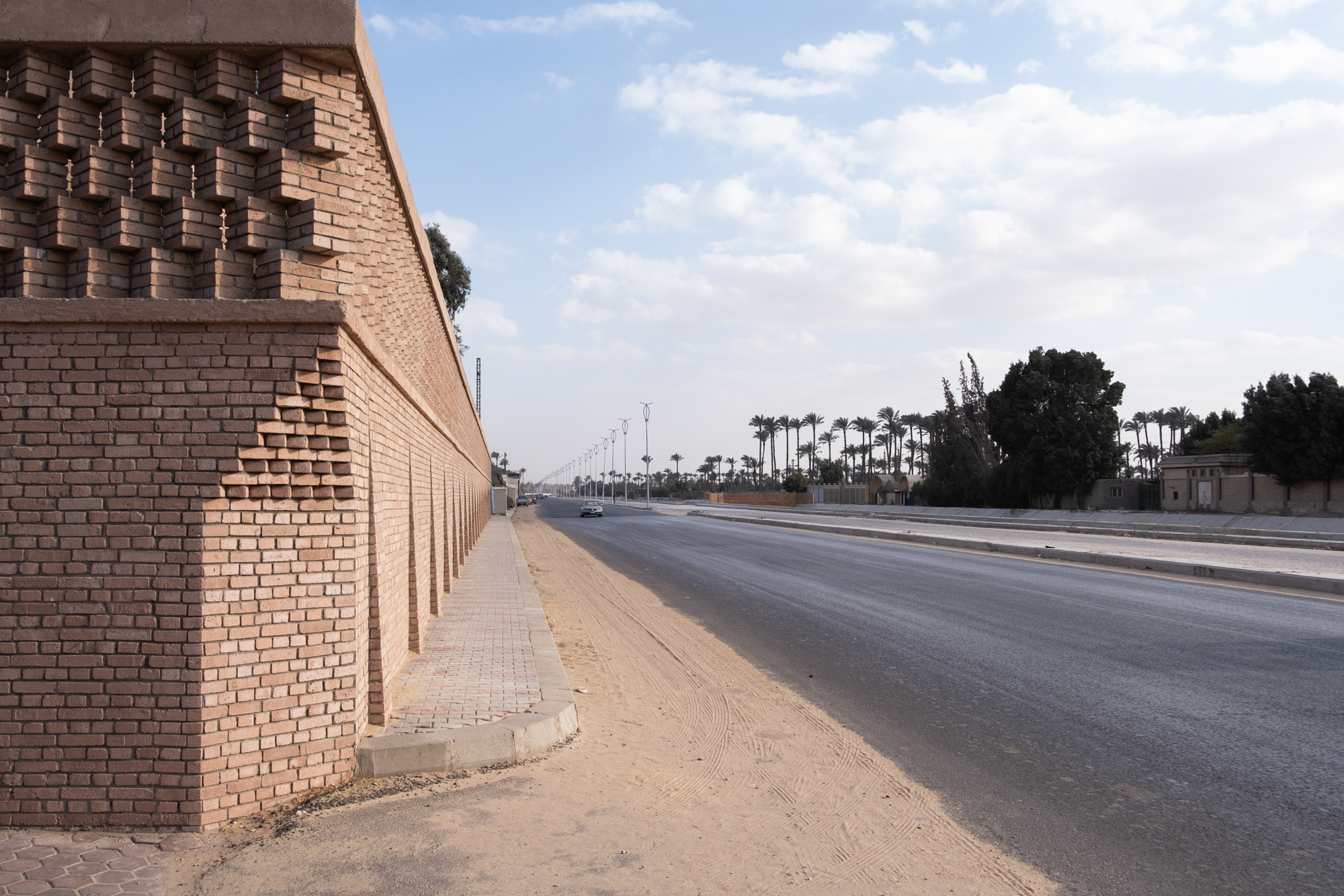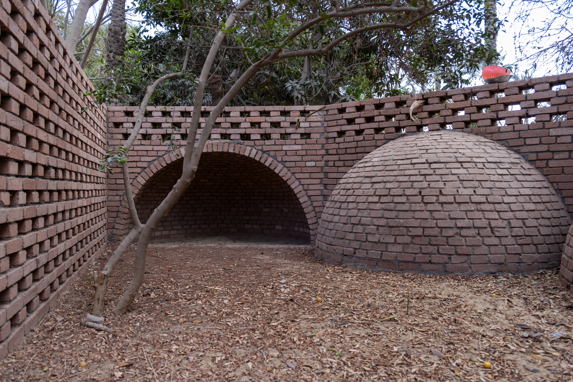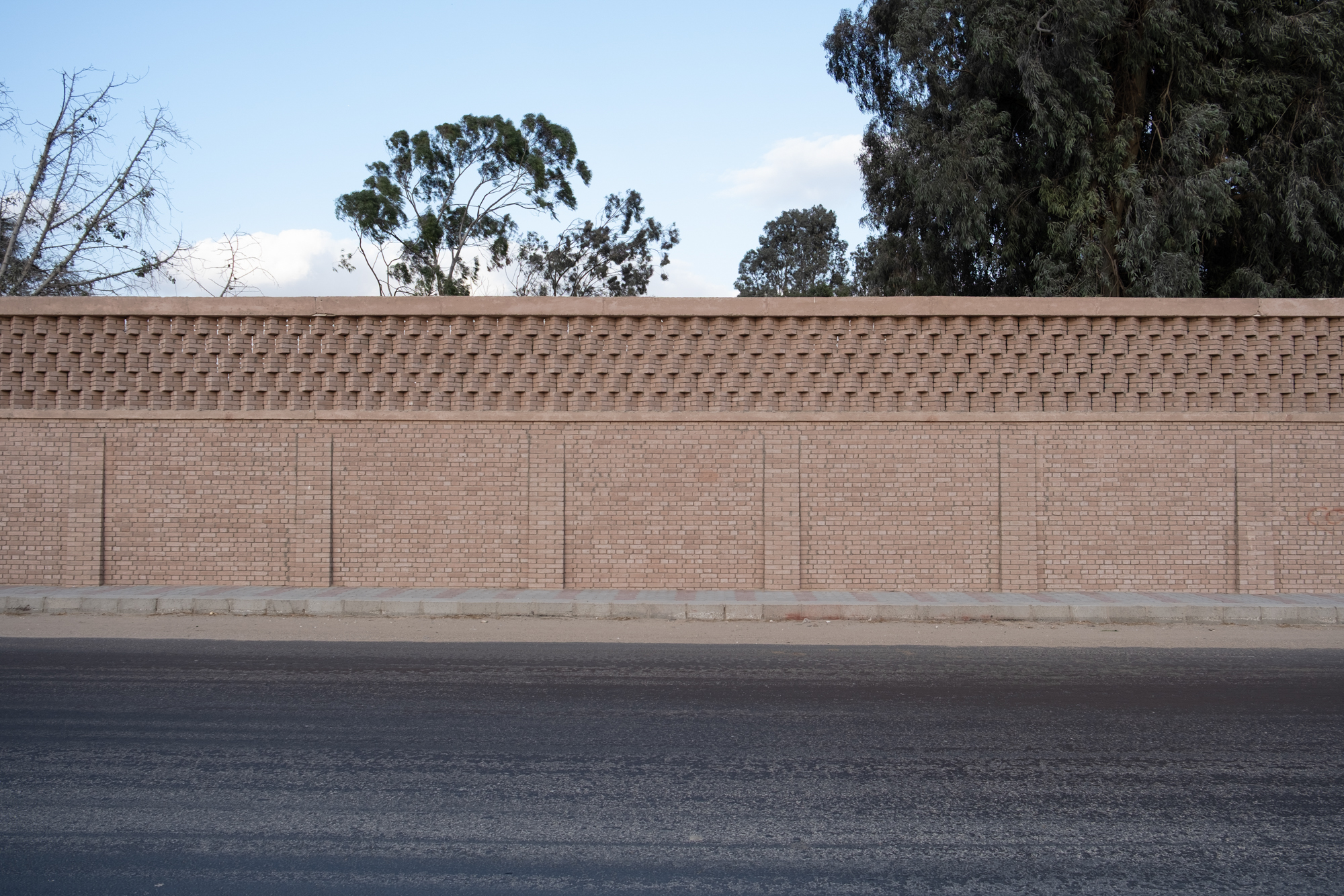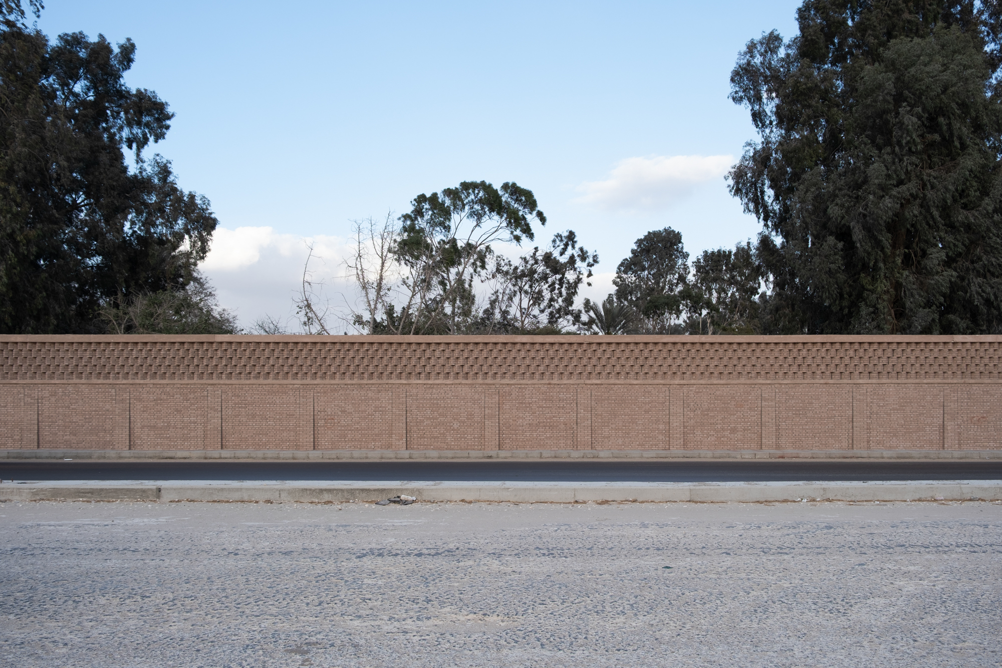 The Mansoureya Fence and Guard Room project explores brick craftsmanship, using Metropolymer bricks, locally upcycled bricks made from surplus materials from construction sites and factories. The Mansoureya Fence and Guard Room is a design-and-build project that initiated a series of works using the same material.