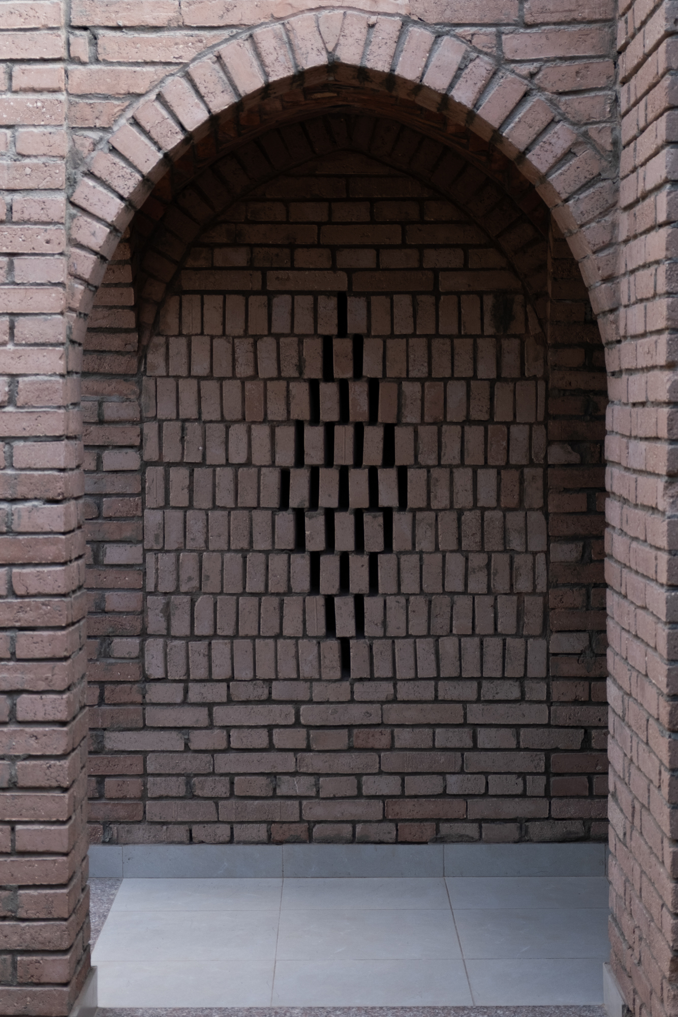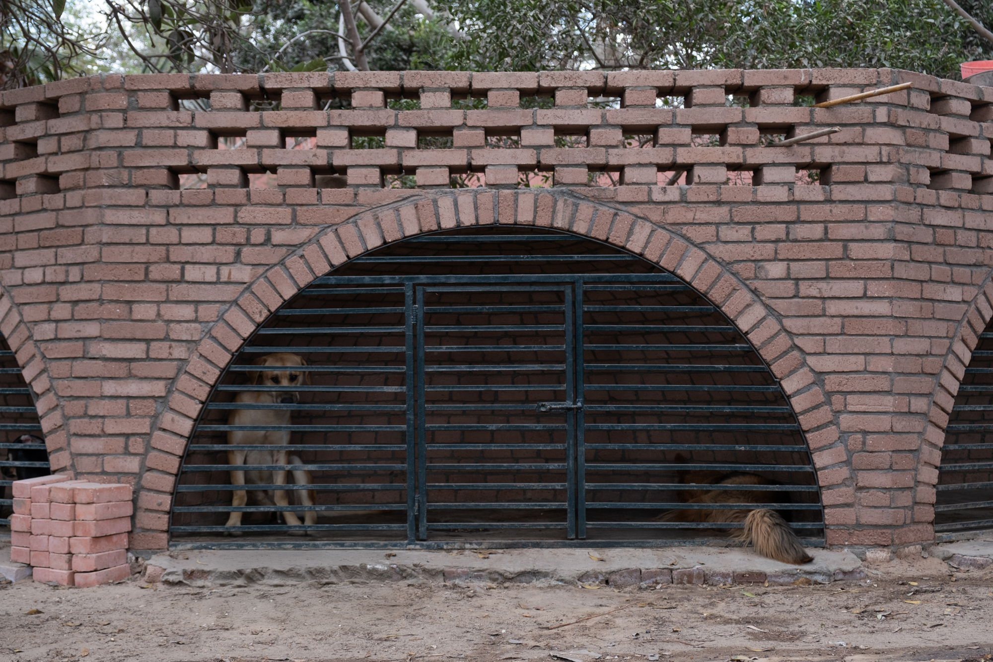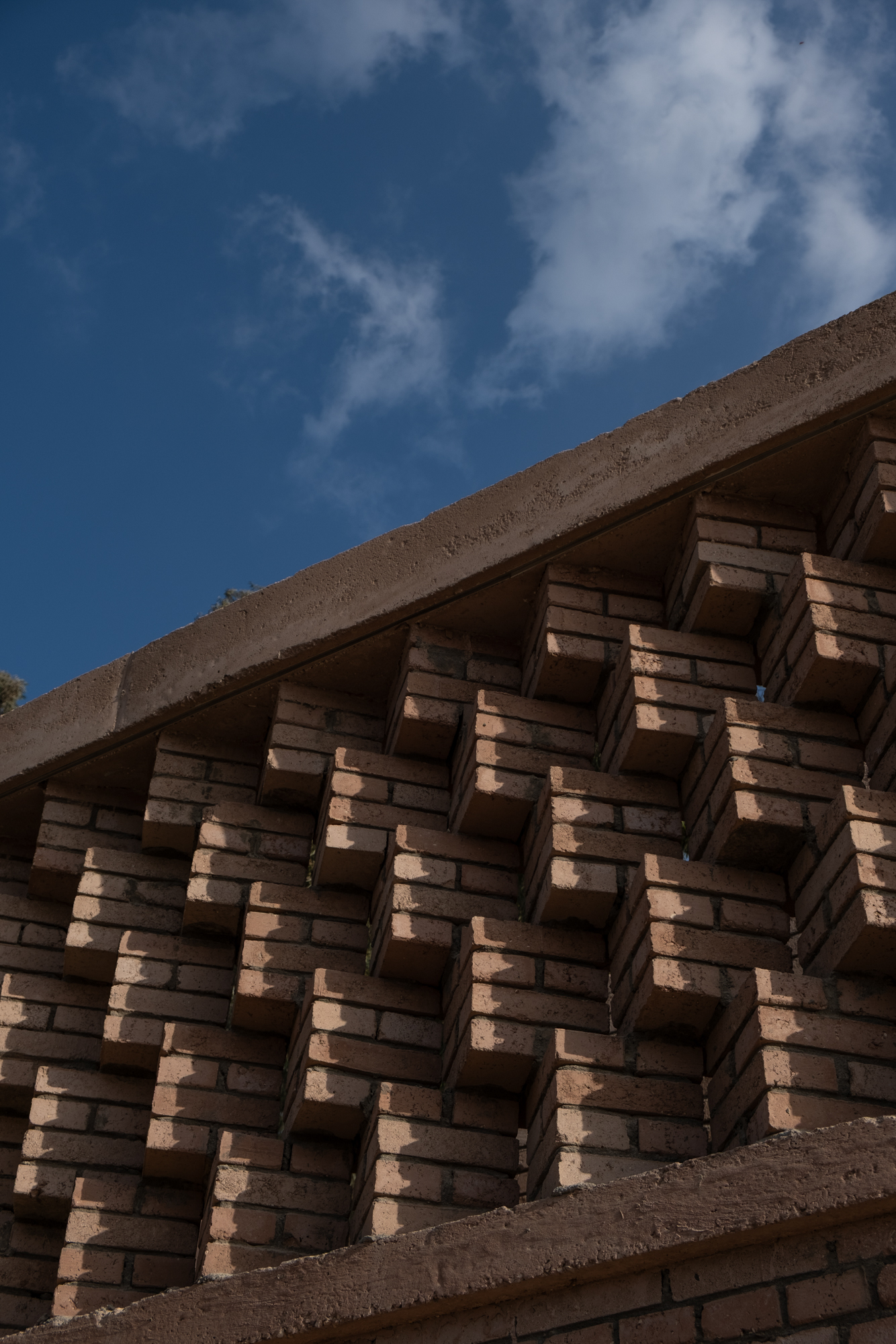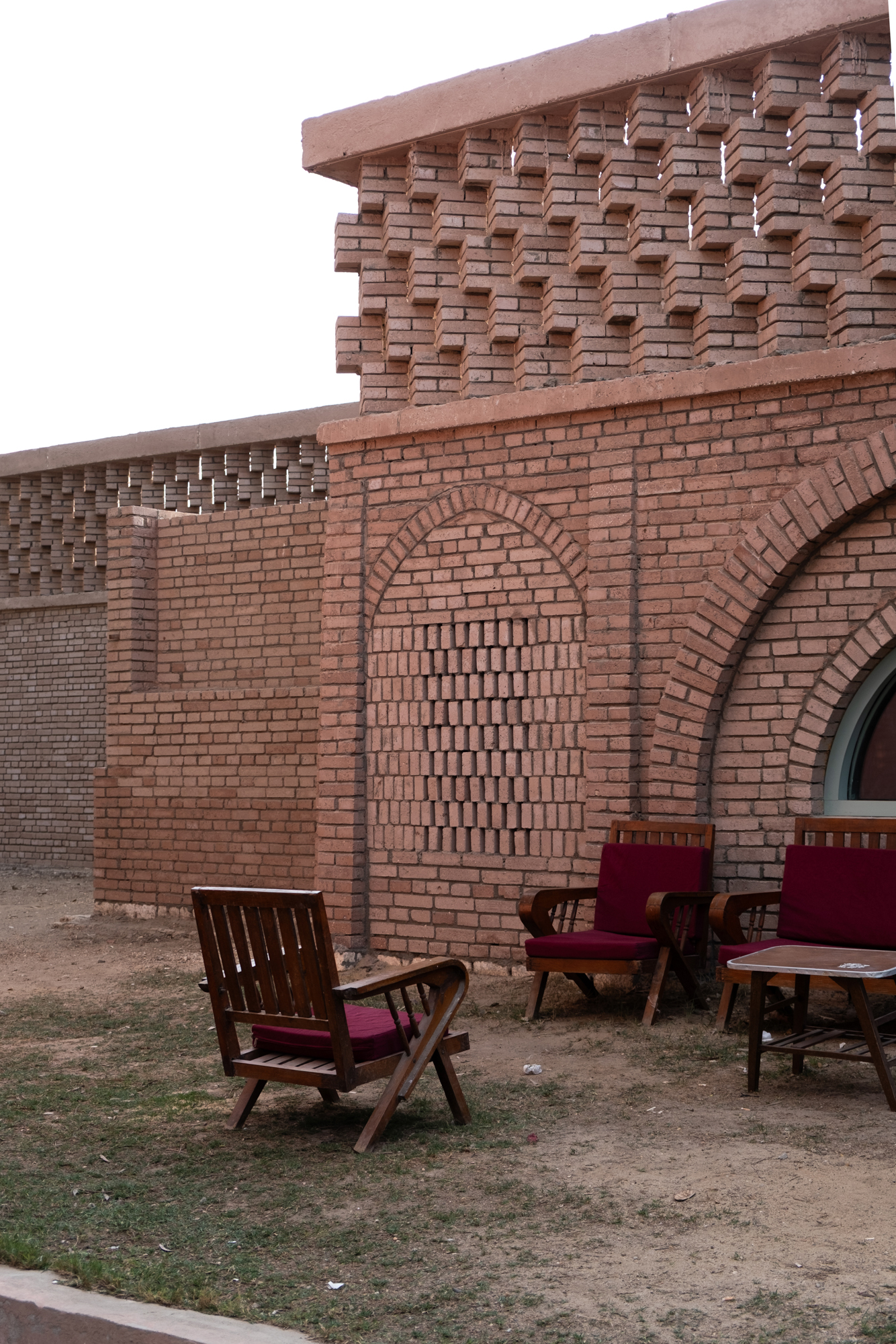 The Mansoureya Fence and Guard Room project explores brick craftsmanship, using Metropolymer bricks, locally upcycled bricks made from surplus materials from construction sites and factories. The Mansoureya Fence and Guard Room is a design-and-build project that initiated a series of works using the same material.